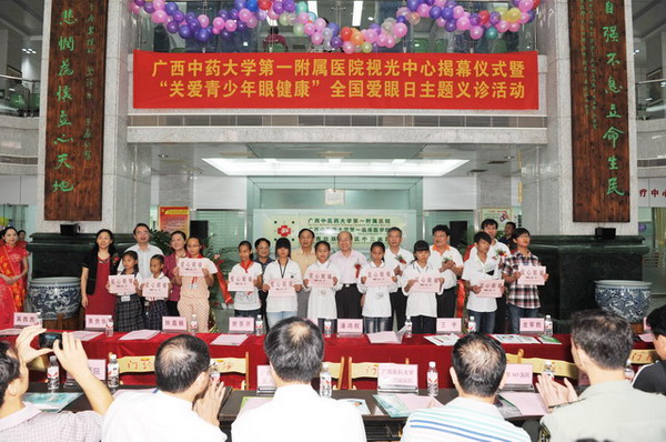 本次仪式还向贫困儿童赠送眼镜50副,发放会议资料400多套。视光中心建成、揭幕之际,同时举行了“关注青少年眼健康”世界爱眼日主题义诊活动和病友联谊会,回馈广大青少年眼病患者、自治区红十字会、广西关心下一代工作委员会和社会各界对医院的信任与支持。