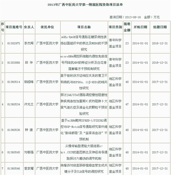 一附院2013年度国家自然科学基金项目立项取得重大突破