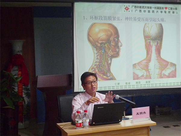 10月22日,一附院仁爱分院开展的“心系群众 改进作风 服务百姓”公益活动走进北部湾银行南宁市城北支行,骨伤科王明杰主治医师作了专题讲座——《颈椎病的防治》,并与循经推拿科医师现场义诊,深受银行干部职工的好评。
