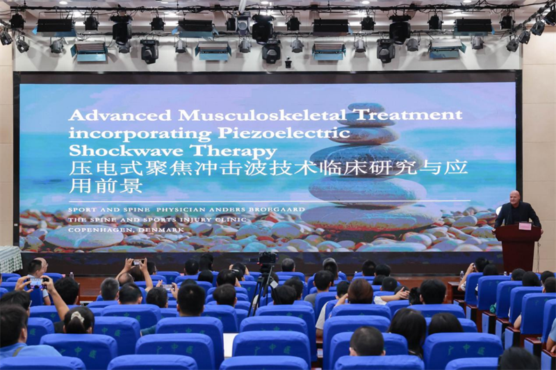 本次培训秉持“中西融合、聚焦临床”原则,特邀欧洲脊椎神经疼痛领域专家Anders Udsen Broegaard教授,以及周宾宾、王开龙、骆佳等区内外颇具声望的专家共同授课。在为期两天的培训中,相继开设了压电式聚焦冲击波应用、PRP再生康复、筋膜学说理论与实操、三无病房延续康复管理等课程。通过理论讲授、案例剖析与操作演示三个模块,构建了一个汇聚共识、交流经验、推动协作的高水准学术平台。与此同时,会议期间完成了广西名中医周宾宾工作室首批师承学员结业考核培训工作。