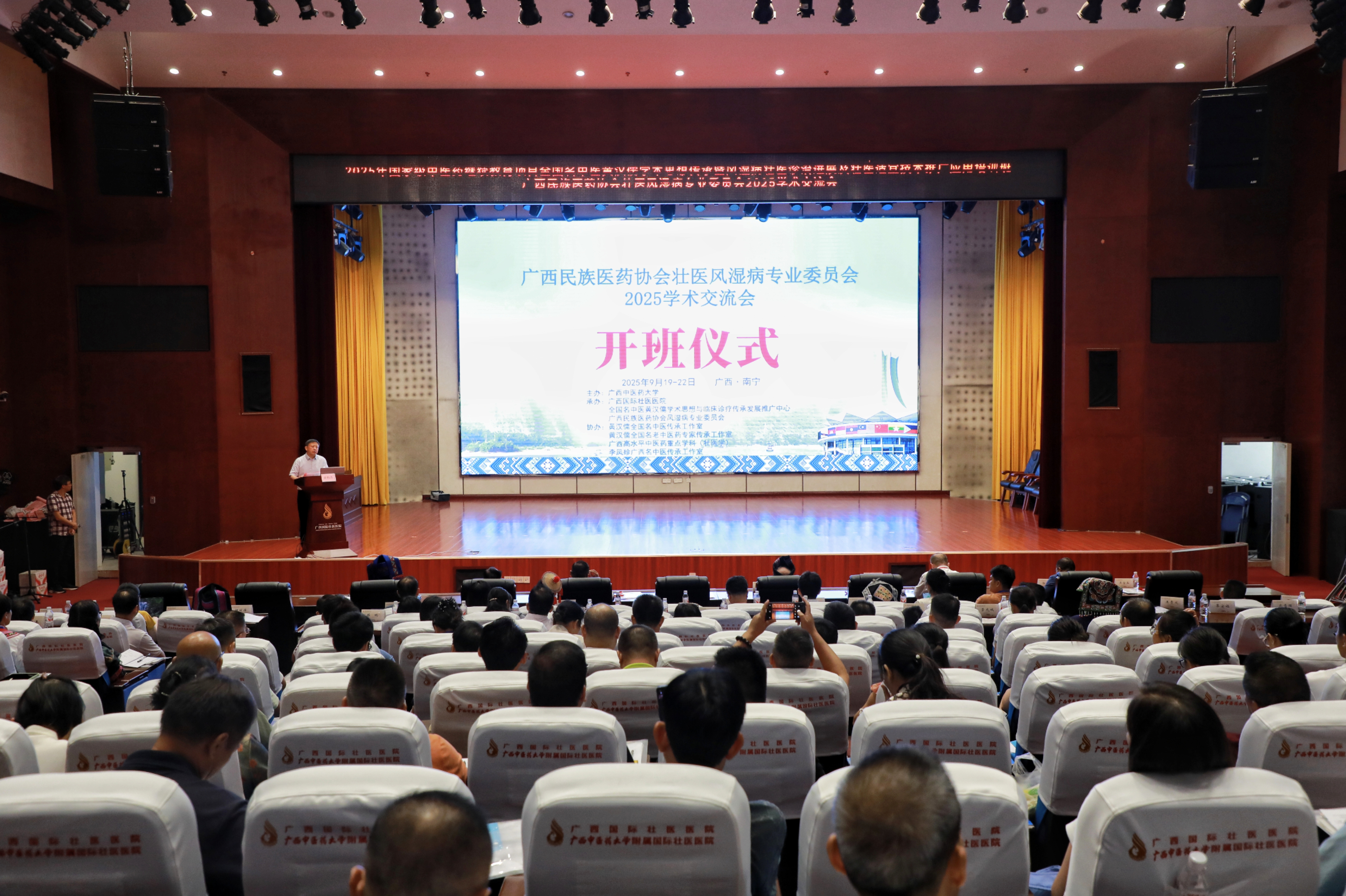 9月20,全国名中医黄汉儒学术思想传承暨2025年国家级中医药继续教育年度项目风湿病壮医诊治进展及壮医适宜技术推广培训班在广西国际壮医医院举办,同期举行广西民族协会壮医风湿病专业委员会2025年学术交流会。全国名中医、壮医药学术理论奠基者黄汉儒教授,医院党委书记、广西民族医药协会会长秦祖杰到场指导,副院长张荣臻主持开班仪式。