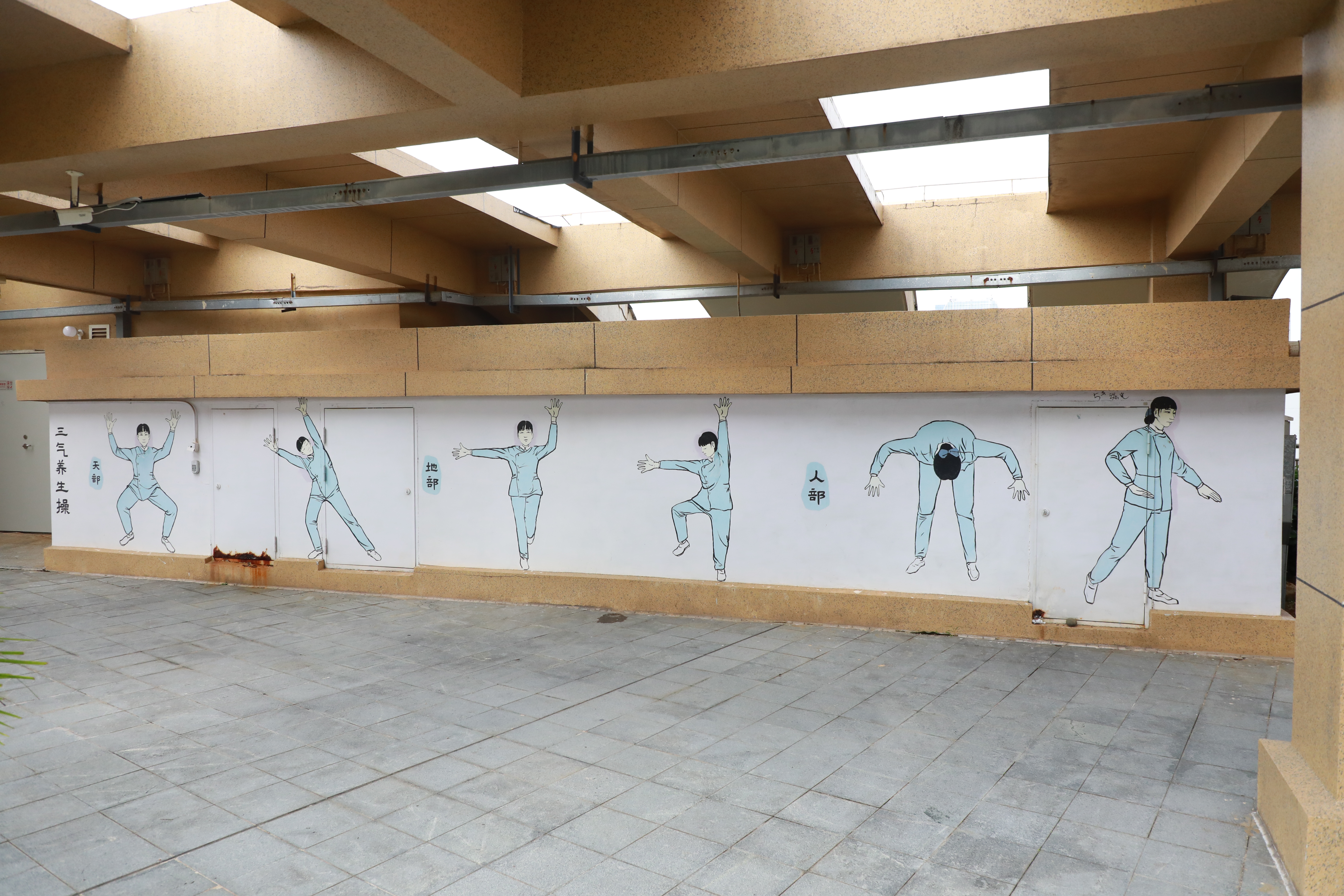 壮医三气养生操是广西国际壮医医院护理人员根据壮医“三气同步”理论、 壮医经筋学的“松筋解结治疗”与“拉筋排毒养生”理论,结合花山壮族古代气功崖画编制的养生保健操,是具有壮医特色的康复养生导引术。壮医三气养生操的基础形态人物作正面站桩形式,双膝微弯成平马步,双肘微屈上举成莲花掌,气沉丹田,调节人体三部之气(即天气、地气、人气),通过伸展拉筋,松解筋结,使人体内的三气之间息息相通、同步运行、制约生化,达到鼓舞正气,提高人体免疫力的作用。