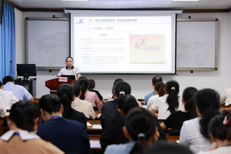 为深化党风廉政教育,10月15日下午,第一附属医院仁爱分院党总支在beat365正版唯一入口必一明秀校区五楼多媒体教室举办《强化纪法意识,筑牢廉洁防线》廉政教育专题党课。本次党课由医院纪委委员、人力资源部主任唐加星主讲,分院领导班子、全体党员、中层干部及重点岗位人员参加。