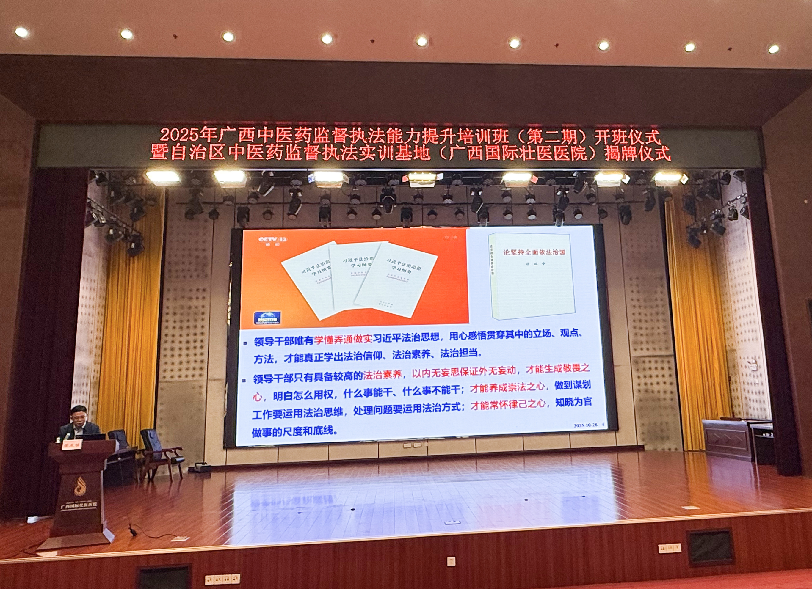 揭牌仪式后,2025年广西中医药监督执法能力提升班(第二期)开班。培训内容包括中医诊所监督、中药药事监督、中医技术监督、涉嫌非法行医监督等模拟执法实践,壮瑶医技法教学等内容。来自全区各地卫生监督机构、疾控中心共160余名学员参训。