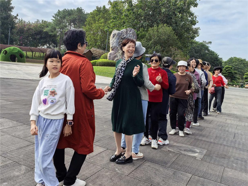 返聘专家、退休职工们精神焕发,结伴健步于园博园的优美小径上。他们时而驻足欣赏园林美景,时而畅谈往事与近况,矫健的身影与欢声笑语成为园中一道亮丽的风景。