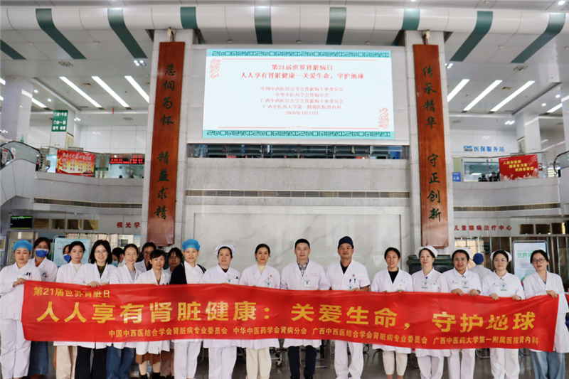 3月12日是第21个世界肾脏日,今年肾脏病日的主题是“人人享有肾脏健康——关爱生命,守护地球”。为响应主题,提高对肾脏健康的认知,倡导科学护肾理念,第一附属医院肾病科联合风湿病科、营养科等多学科团队,在东葛院区门诊大堂一楼举行了大型义诊活动。