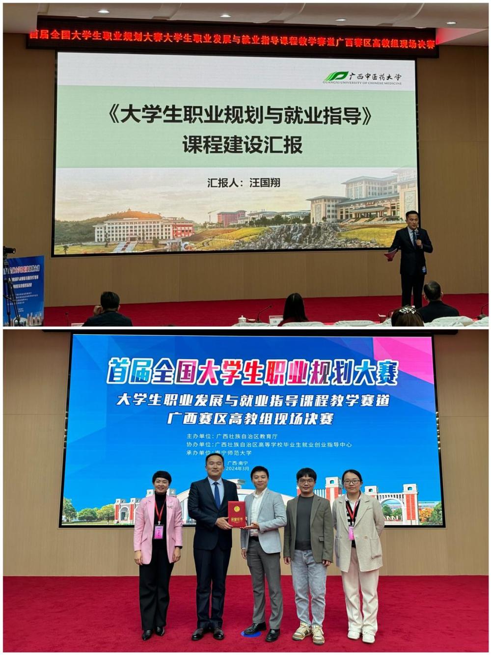 3月16日,在南宁师范大学举办的首届全国大学生职业规划大赛广西赛区现场总决赛大学生职业发展与就业指导课程教学赛道高教组比赛中,beat365官网汪国翔教师团队表现优异,荣获金奖。