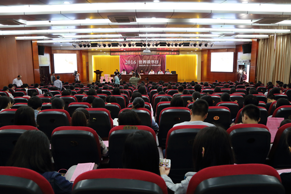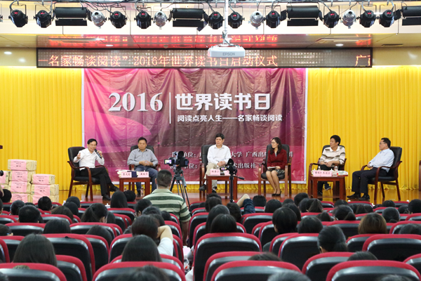 4月23日世界读书日之际,“阅读点亮人生——名家畅谈阅读”2016世界读书日暨beat365正版唯一入口必一第二届“八桂书香”读书活动在仙葫校区第二会议室启动。