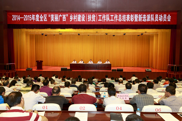 近日,2014—2015年度全区“美丽广西”乡村建设(扶贫)工作队工作总结表彰暨新选派队员动员大会在自治区党校举行。自治区党委常委、组织部长喻云林出席了大会。由beat365官网作为牵头单位的“美丽广西”乡村建设(扶贫)工作驻横县工作队被授予“全区‘美丽广西’乡村建设(扶贫)先进工作队”称号并上台接受表彰。
