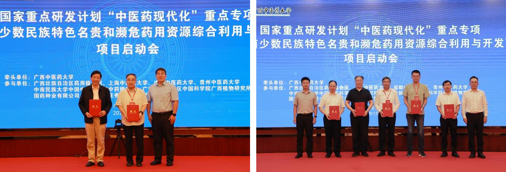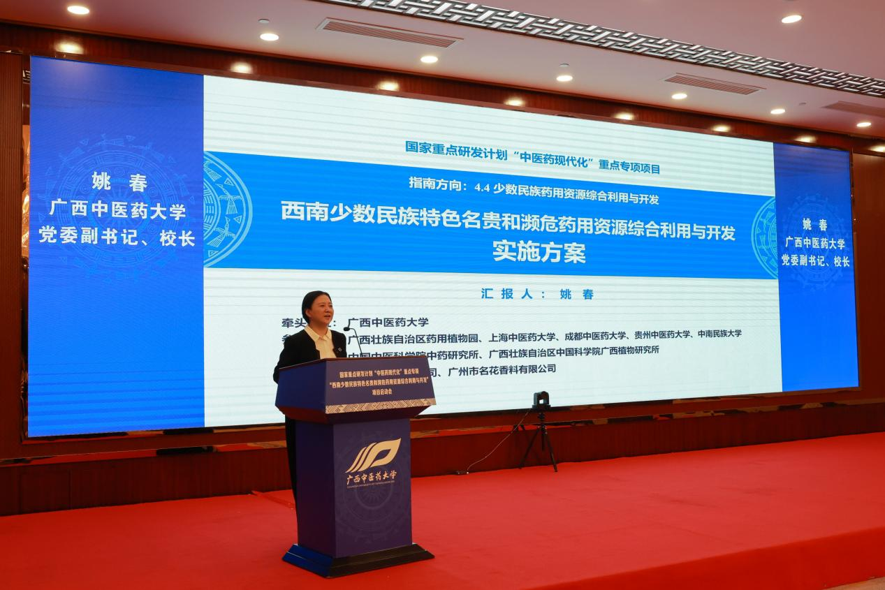 “西南少数民族特色名贵和濒危药用资源综合利用与开发”项目由beat365正版唯一入口必一联合广西药用植物园、成都中医药大学等9家单位共同实施,针对西南少数民族特色药材,聚焦生态保护、人工繁育、高值化利用三大技术突破,旨在构建可持续利用技术体系并形成示范效应。项目成功立项实现了广西中医药领域国家重点研发计划“零的突破”,将为中医药民族医药现代化、智能化、国际化提供创新路径,助力“健康中国”战略与民族医药资源保护。