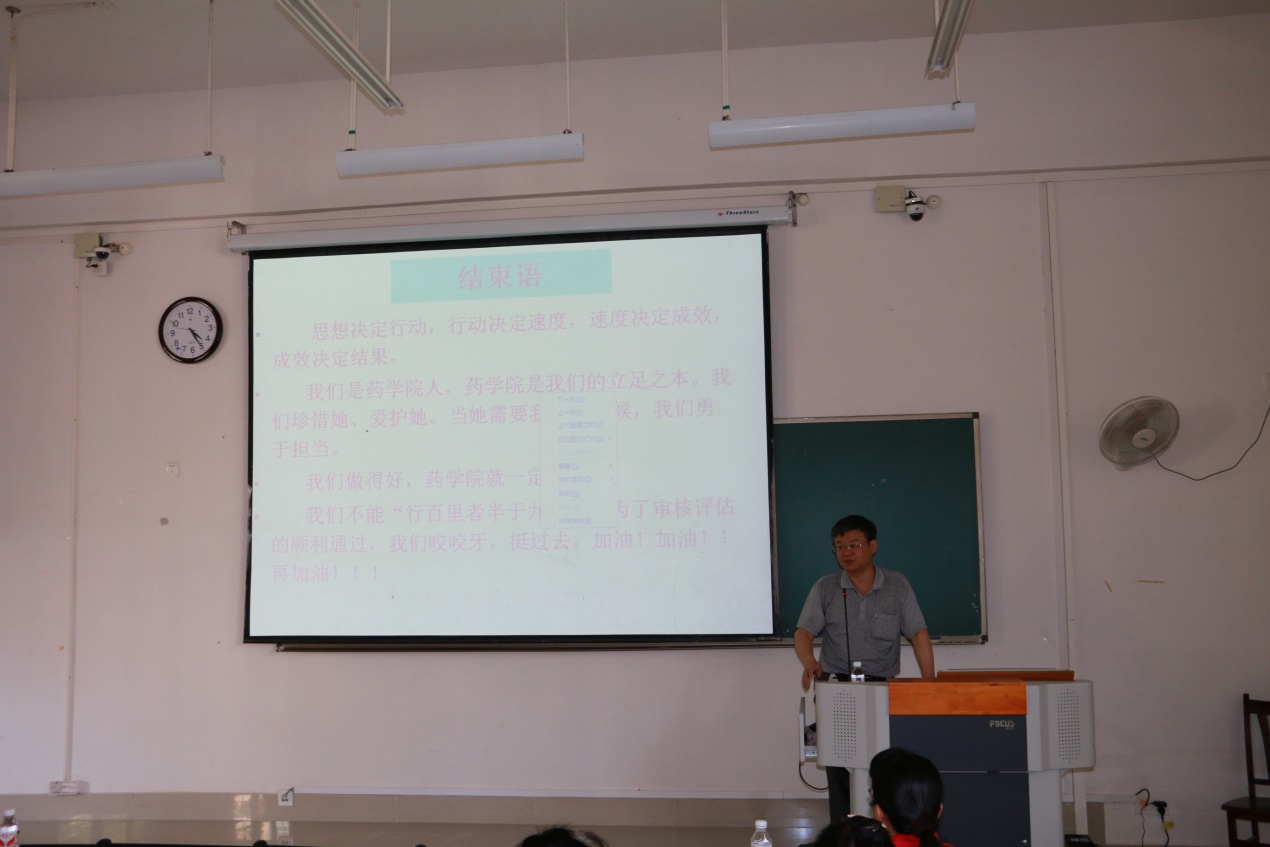 最后,陈勇院长再次强调本科教学审核评估工作的重要性和紧迫性,现在已经进入了倒计时阶段,希望全体药学人同心协力,克服困难,确保任务圆满完成。