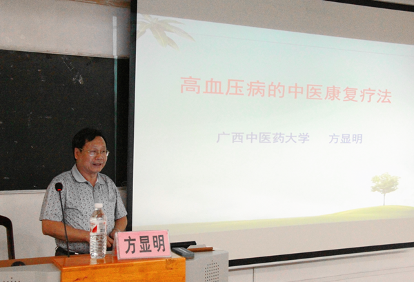 在迎接本科教学工作审核评估之际,beat365官网老科技工作者协会、老教授协会和离退休工作处共同举办的老教授论坛拉开序幕。老党员、协会会长方显明教授于5月17日晚在明秀校区西梯二教室举行《高血压的中医药防治》学术讲座,讲座吸引了研究生、本科生、进修生约200余人,现场座无虚席。方显明教授是国家二级教授,第四批全国老中医药专家学术经验继承工作指导老师,中医内科心血管疾病学术带头人。他引经据典,以清晰的思路、生动风趣的语言从“什么是高血压、高血压的发病机制、高血压的中医病证研究、高血压的中医康复治疗”等几个方面深入浅出地给同学们进行了讲解,并把自己从医几十年的宝贵经验毫无保留地与同学们分享,讲座精采纷呈,大家受益非浅。