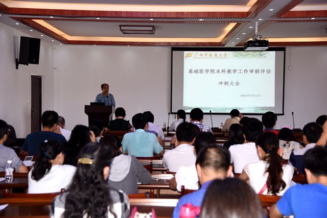 2016年5月31日下午,距离教育部对beat365官网本科教学工作审核评估仅有13天,为了更好的推进落实本科教学工作审核评估工作,基础医学院召开本科教学工作审核评估冲刺会议,戴铭副校长到场指导,基础医学院全体教职员工和部分学生代表参加会议。