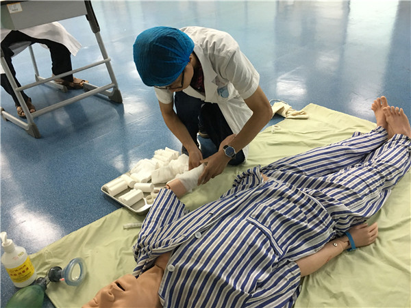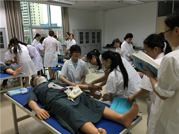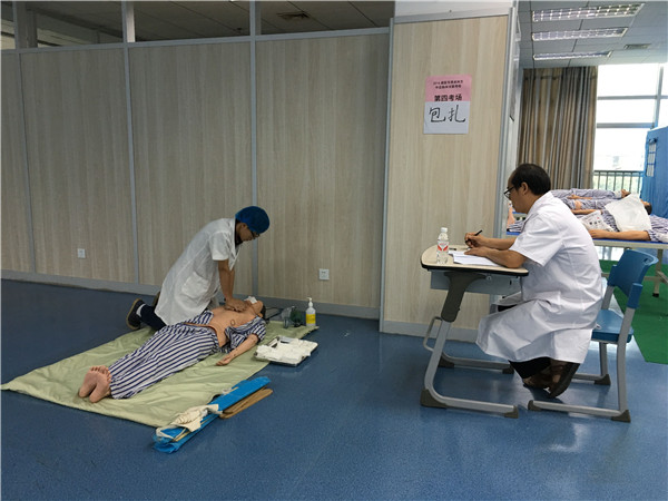 随着2016届毕业生学期期末的到来,beat365官网医学教育实训中心展开了毕业生临床操作考核的系列工作。考核对象为2010级中医学(对外方向)专业34人、2011级中医学专业102人、2011级中医学(桂派杏林)专业22人、2011级中医学(订单定向)专业50人、2011级口腔医学专业45人、2012级康复治疗学专业26人,共计279人。临床技能考核参照多站式考试(OSCE)模式进行,占总成绩的70%。临床技能考核设候考区、考试区,共分九站:第一站 内科技能——体格检查 ;第二站 外科技能——无菌技术;第三站 妇儿科临床检查操作技能;第四站 急救技能——心肺复苏术、外科包扎或骨夹板固定;第五站 针灸技能——针灸手法操作;第六站 推拿技能——推拿手法操作;第七站 临床接诊与医患沟通能力——模拟门诊接诊;第八站 临床思维能力——病例分析;第九站 医技内容——辅助检查判读。同学积极认真地备考和参加考试,整个考试过程有序、顺利,考官本着严肃、客观、公正、公平的原则,严格按照<<毕业考核评分标准表>>进行评分,使整个考核体现了真实的实习与教学效果。