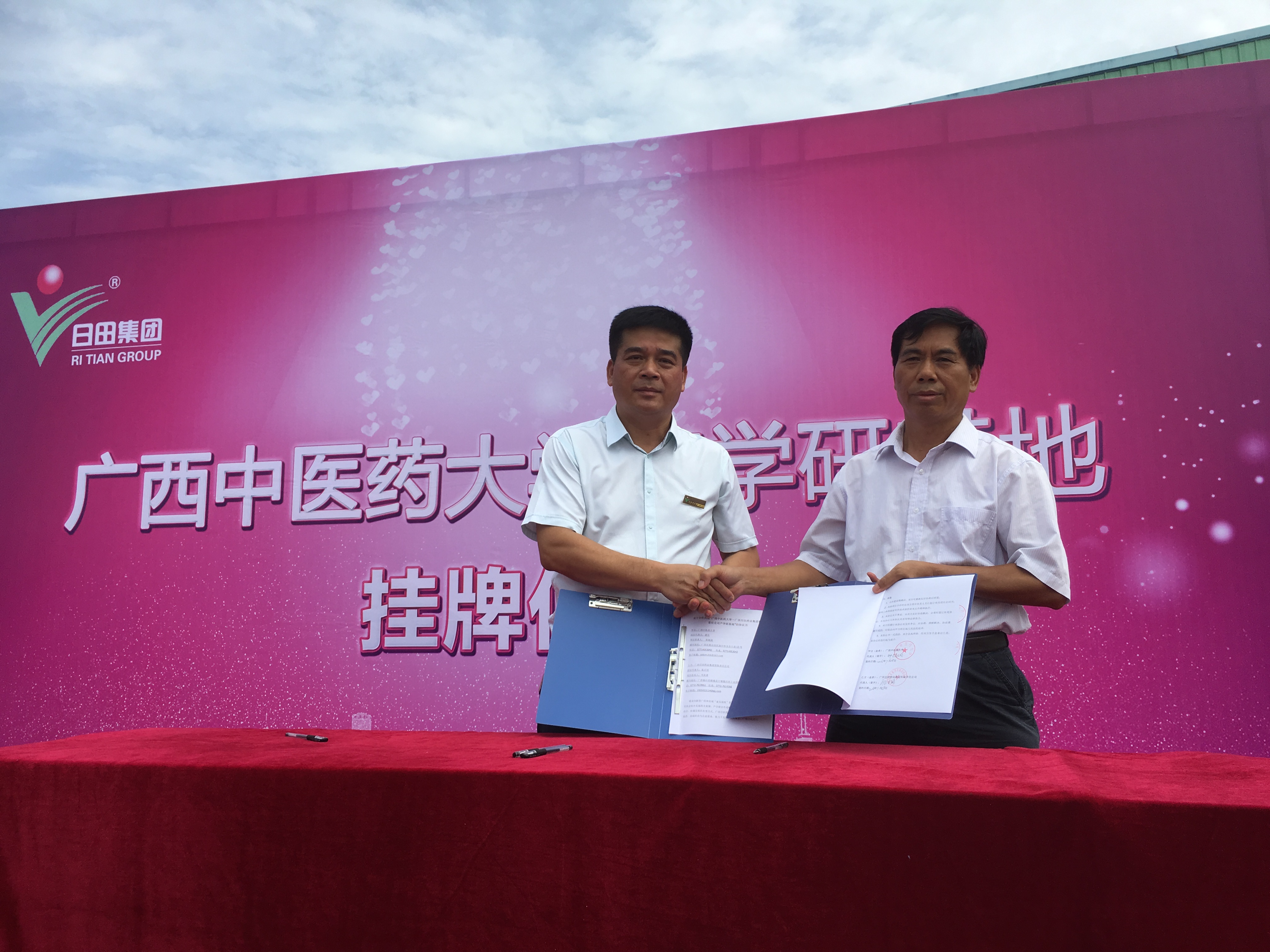 2016年7月28日,beat365正版唯一入口必一与广西日田药业集团有限责任公司签署战略合作协议,该仪式在广西日田药业集团有限责任公司举行。beat365正版唯一入口必一科技处处长钟振国、药学院党委书记王勤、药学院院长陈勇等校方代表,日田药业集团董事长张日田先生率企业成员共同参加了本次签约仪式。双方就产品研发、技术需求支撑、人才委托培养等方面达成合作意向。在揭牌仪式现场,科技处处长钟振国代表beat365正版唯一入口必一与广西日田药业集团董事长张日田共同签订“产学研”协议并为产学研基地揭牌,柳州市统战部、工商联和柳城县相关领导共同见证该仪式。