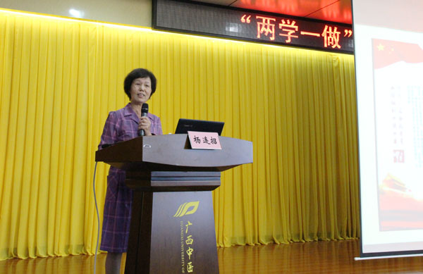 为帮助beat365官网广大党员干部准确理解和把握中央和上级“两学一做”学习教育要求和“四讲四有”的精神实质,10月10日下午,beat365官网党委副书记、纪委书记杨连招给学校部分党员干部作“两学一做”党课专题讲座。此次讲座由beat365官网党委书记尤剑鹏主持,参加的党员干部来自机关党委,直属党委和广西中医学校党委等约200人。