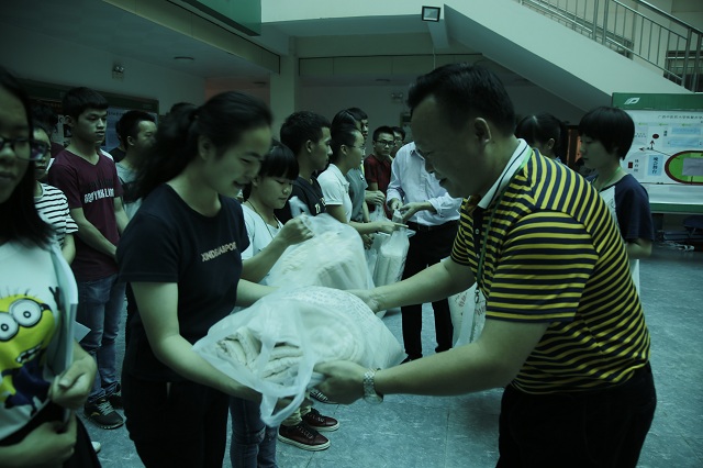 董塔健副书记以及学生工作处的领导老师、各学院有关辅导员为120名2016级家庭经济困难学生发放垫被,将学校的关心和温暖送给学生,让他们能够安心、温暖度过寒冬。