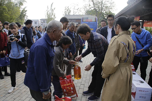 本次下乡活动,董塔健副书记和辅导员们还为平朗乡双窑村的贫困户发放了大米、花生油等生活用品,为村里的留守儿童每人发放新书包及精美的学习用品等。大学生服务总队学生开展了药线点灸、保健推拿、测量血压、发放美丽乡村宣传册等。