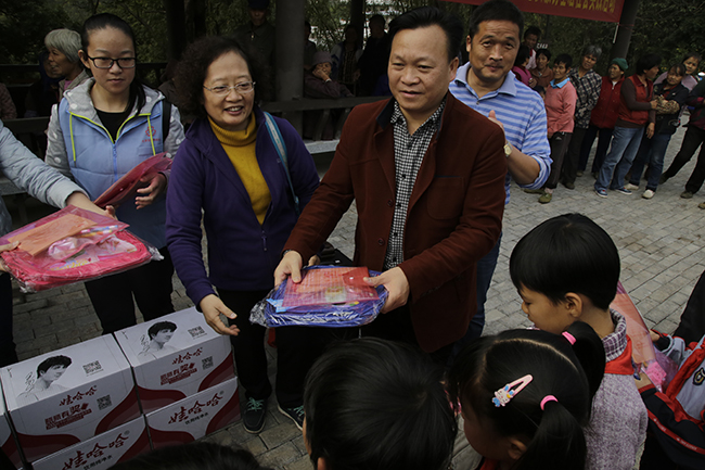 学工处肖华业处长、罗晓燕副处长为留守儿童发放学习用品