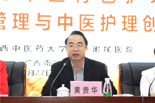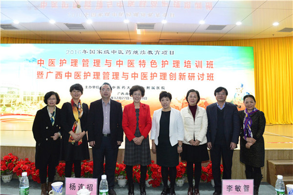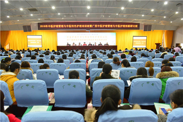 为提高全区中医护理理论和技能水平,搭建国内中医护理先进经验交流平台,树立广西中医护理技术在全国中医护理学科中的地位,推广一附院中医护理特色技术,充分发挥一附院护理学科的辐射引领作用,一附院于2016年12月27日~30日在一附院多功能学术厅举办2016年全国中医护理管理与中医特色护理培训班暨广西中医护理管理与中医护理创新研讨班。beat365正版唯一入口必一党委副书记、纪委书记、广西护理学会理事长杨连招教授、中国中医科学院广安门医院护理部主任张素秋教授、一附院院长黄贵华教授、党委书记李敏智教授、党委副书记、纪委书记、副院长吴西西教授、副院长卢健棋教授、周建国教授、钟远鸣教授等领导出席培训班的开班仪式。来自区内外各级医院护理副院长、护理部主任、护士长、护理骨干600多名护理人员参加了学习班。开班仪式由一附院党委副书记、纪委书记、副院长吴西西主持。