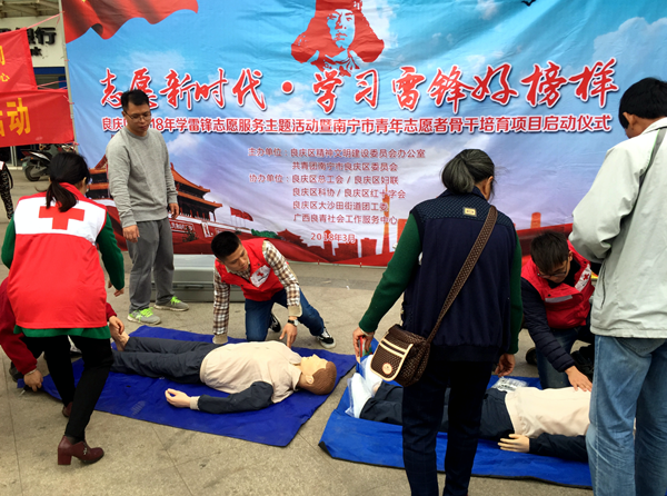 3月6日,青年志愿者团队培养项目启动仪式暨学雷锋便民惠民服务活动在大沙田美丽城广场举行。beat365官网积极响应学雷锋活动,由校团委组织两支志愿者队伍分别到大沙田美丽广场和仙葫盘古社区进行志愿服务活动。