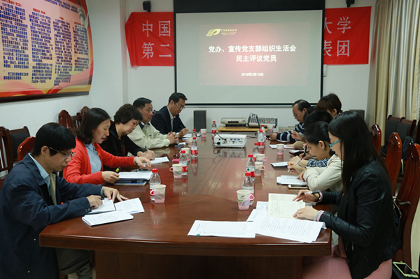 3月15日上午,党办、宣传党支部召开组织生活会和开展民主评议党员。学校工会主席杨连招教授、原校党委书记朱华教授作为普通党员参加会议,会议由党支部书记杨海洁主持。