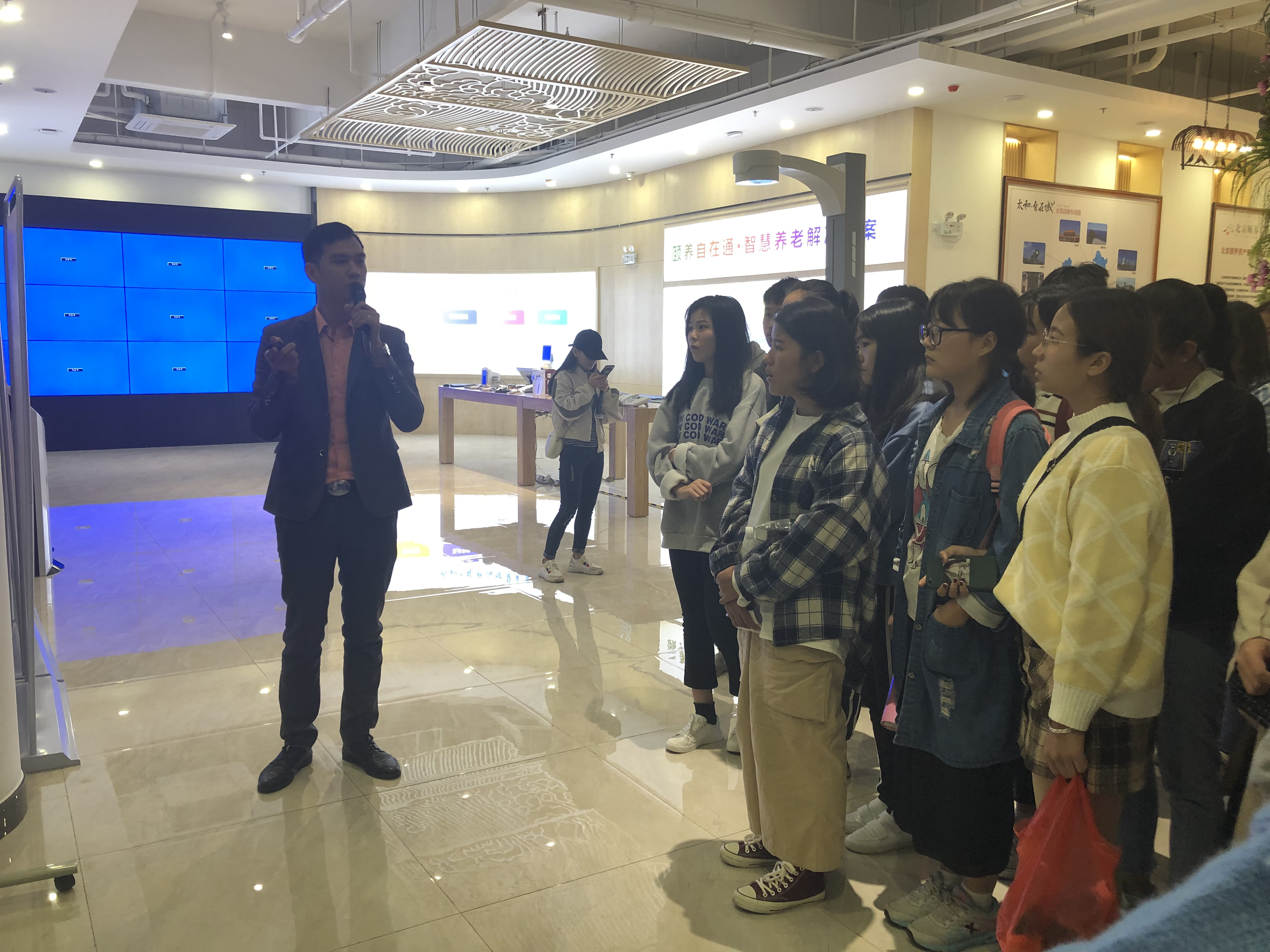 此次活动走进的企业是太和自在城股份有限公司。活动开始,公司工作人员首先介绍了太和自在城的占地平面分布以及各个建筑功能区。工作人员带领同学们参观养老住宅区,介绍园区建筑的设计理念,带领同学们领略企业文化的魅力。活动最后进行了现场提问讲解环节,同学们对就业以及养老方面向工作人员提问,工作人员从员工薪资待遇、晋升途径以及家属福利进行了全面的解答。