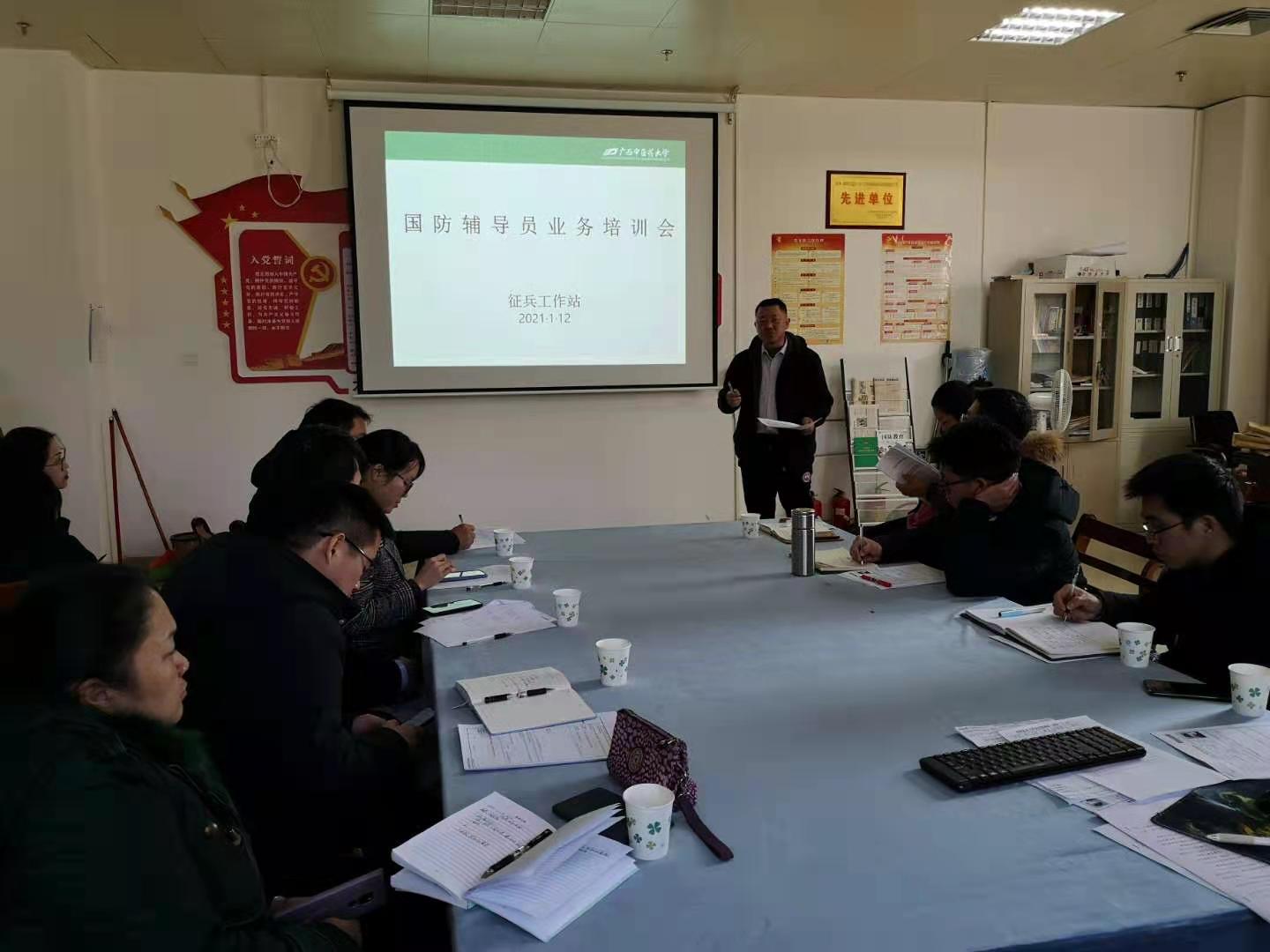为做好学校2021年度征兵工作,锻造一支“政治强、业务精、作风正、纪律严、工作实、服务优”的国防辅导员队伍,进一步提升beat365官网兵员征集工作的水平。1月12日下午,武装部举办征兵工作业务培训会,各学院及附属单位的国防辅导员参加此次会议。