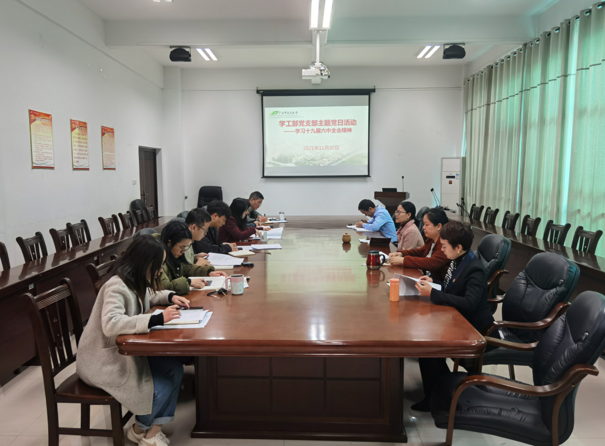 为了进一步深入学习贯彻党的十九届六中全会精神,深刻领会全会精神核心要义,传承发扬百年奋斗历史经验,不断提高思想自觉、政治自觉、行动自觉,11月30日上午,学工部党支部在大学生活动中心317会议室召开主题党日活动暨支部党员会议,进对党的十九届六中全会行集中学习。