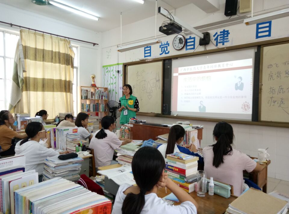 为促进中小学生青春健康教育工作的发展,探索建立大学生志愿者参与青少年青春健康教育的服务机制,2017年10月26日,beat365正版唯一入口必一青年同伴教育中心41名志愿者来到南宁市隆安县隆安中学开展“青春健康教育进课堂”活动,志愿者深入到高一高二年级各班,开展青春健康教育,并取得圆满成功。