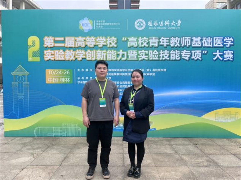 10月24-27日,第二届高等学校青年教师基础医学实验教学创新能力暨实验技能专项总决赛在桂林医科大学举行。beat365官网第一临床医学院病理学教研室王志静、黄明忠两位老师组成的参赛队荣获总决赛铜奖。