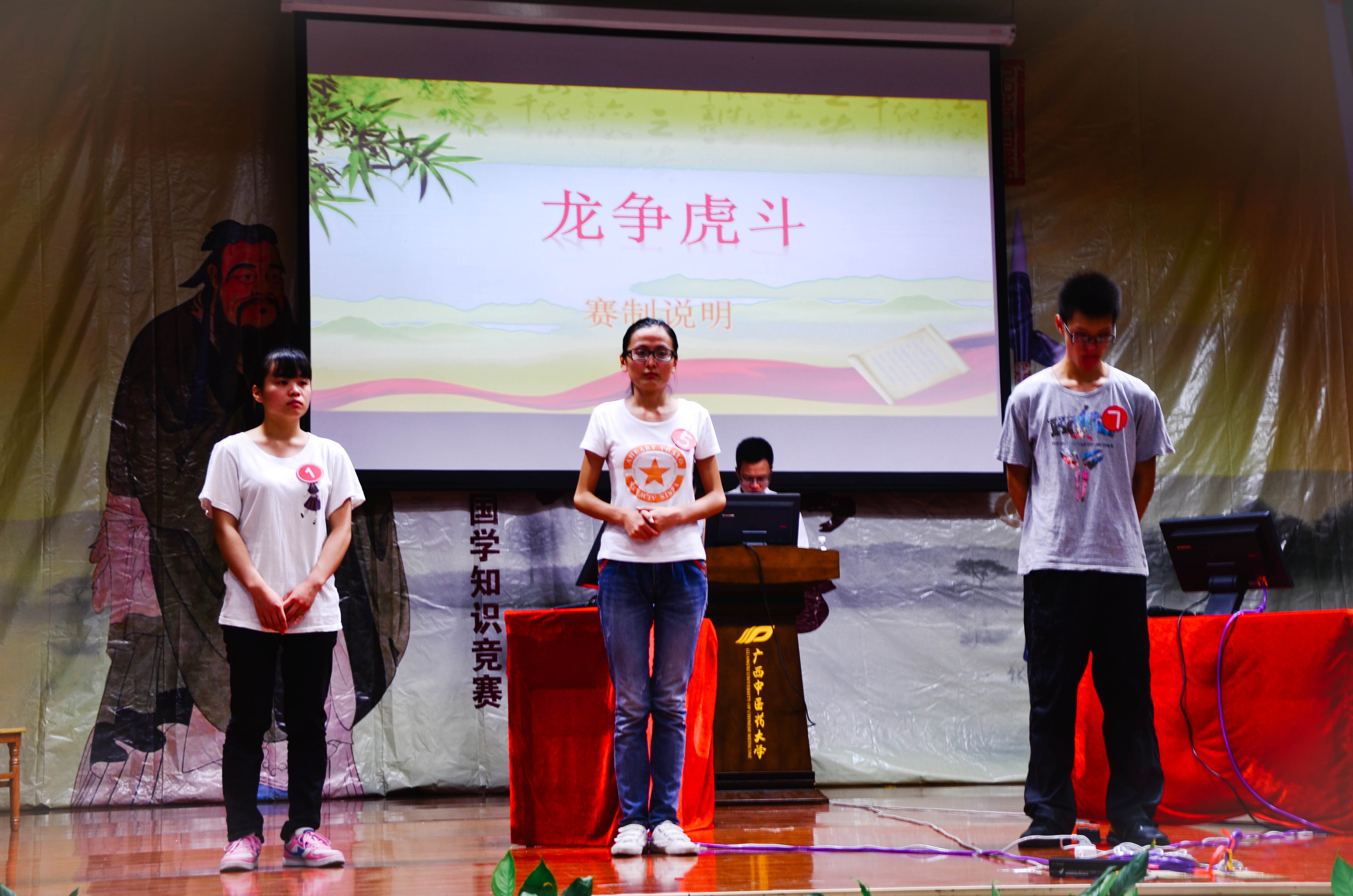 今夜月明星稀,今夜知识的海洋在涌动。2016年6月14日19:00以“品国学,传杏林”为主题的国学知识竞赛在beat365官网仙葫校区小礼堂隆重举行。本次大赛的预选赛报名异常火爆,经过预选赛的激烈角逐,仅有12名选手凭借自己深厚的国学底蕴在800余人中脱颖而出。
