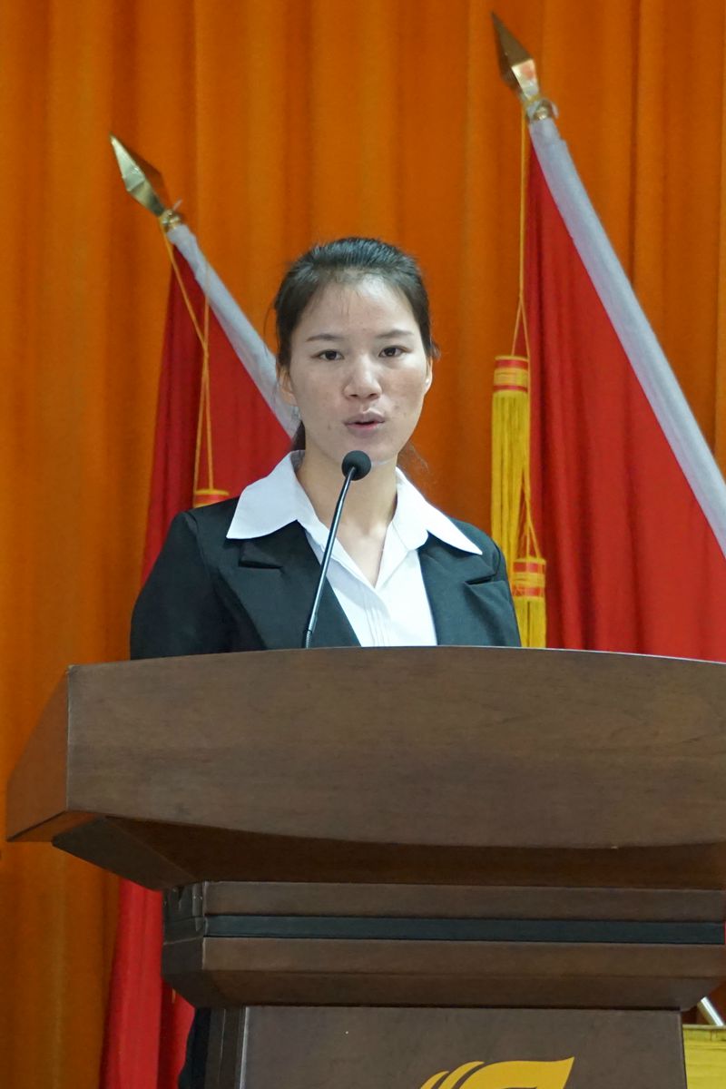 黄英老师发言,她指出:“学生代表大会制度是校领导关心指导学生会发展的重要举措,学生会应当在校领导的关怀下努力进步,继续为学校的发展贡献出更多的力量。”前学生会主席施艳媚宣读了《第二十届学生委员会工作报告》,她总结学生会过去一年的工作,反思学生会在开展工作中的一些不足,为学生会的发展指明了方向。