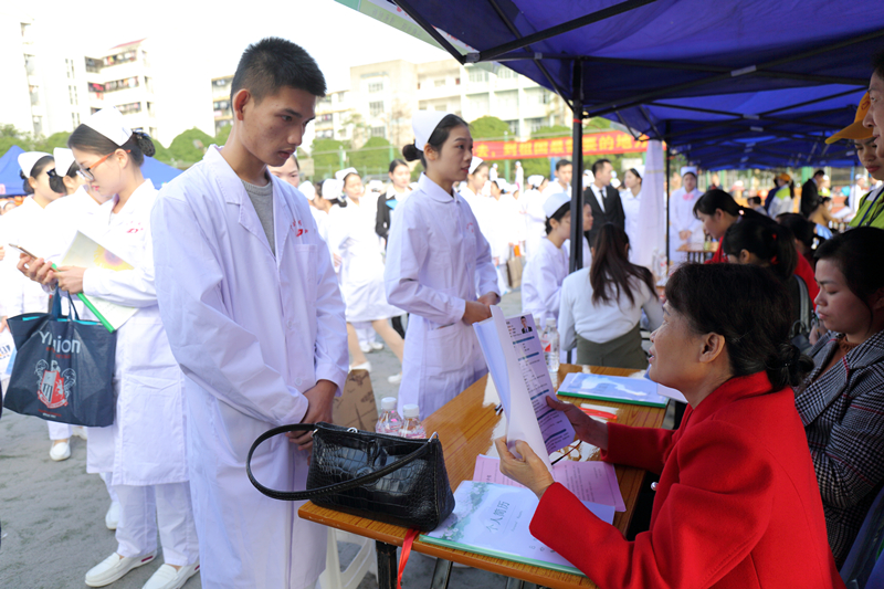 为更好地给beat365官网应届毕业生提供优质就业岗位,方便学生和用人单位双向选择,beat365正版唯一入口必一2018届护理类专业毕业生就业双选会于2017年12月5日在明秀校区足球场举办。来自区内外83家医疗、保健等领域单位参加了双选会,为beat365官网938名护理专业毕业生提供了2085个护理、管理等就业岗位,100余名毕业生与用人单位现场签定就业协议,200多名毕业生与用人单位达成了就业意向。
