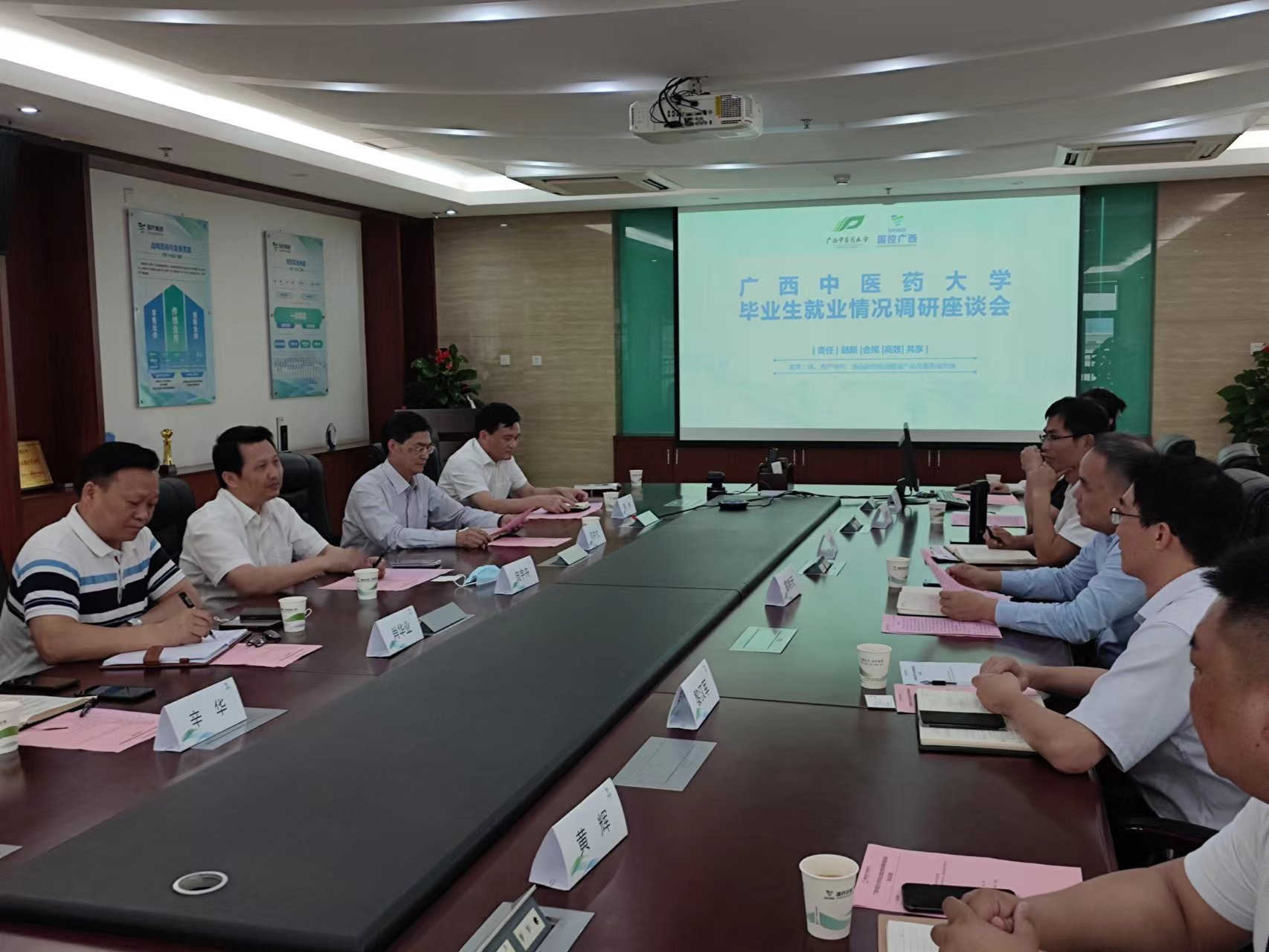 5月6日,beat365官网党委副书记庞宇舟、何并文带领招就处、药学院、高职院等部门领导和老师到国药控股广西有限公司、广西大参林连锁药店有限公司就校企合作、人才培养、实习就业等进行深入交流。