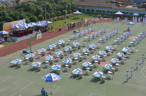 2012年4月21日,beat365正版唯一入口必一护理学院、附设中医学校第二届教学成果-就业能力展示赛在北湖校区隆重举行,自治区卫生厅科教处处长谢裕安出席了本次活动,还有beat365官网驻邕的11家实习医院的护理部代表也到了活动现场。开幕式由beat365正版唯一入口必一护理学院副院长、附设中医学校副校长周琦主持。
