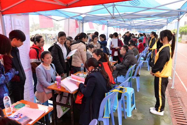 2015年3月13日,广西中医学校2015届毕业生就业双选会在北湖校区运动场隆重举行。学校党委副书记、纪委书记罗艺徽,副校长黄勇亲临现场指导。