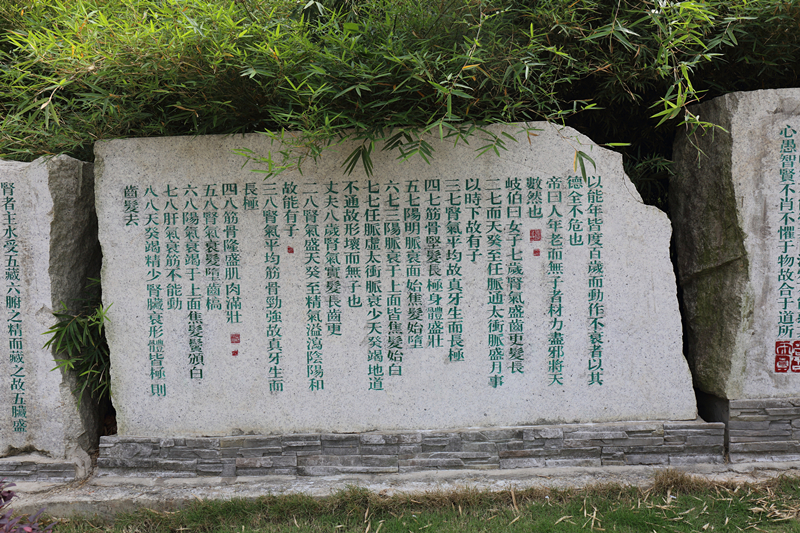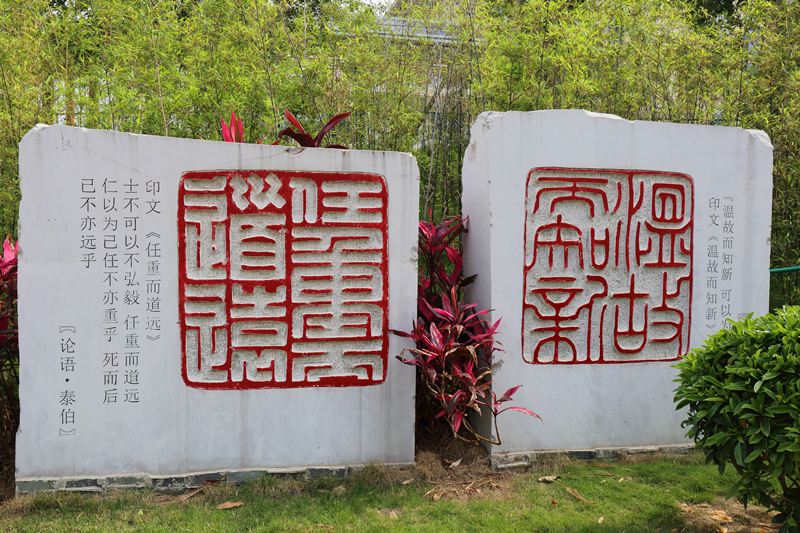 经典文化石墙 来源:校党委宣传部 作者:宣传部 日期:2018-05-07 点击数: 次 分享到: 经典石刻碑墙位于亲亲路与尚中路、行健路交汇靠东坡竹林一侧,由十三块石刻组成。“温故而知新”(《论语 为政》)“任重而道远”(《论语 泰伯)《周易易传》章句《道德经》章句《黄帝内经》石刻《黄帝内经》石刻《黄帝内经》石刻《伤寒论》原序《千金要方》石刻经典石刻碑墙 打印正文 关闭本页