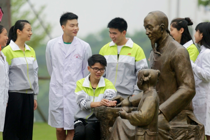 图书馆正门的柱子上,悬挂着二副对联: “晨钟暮鼓睇逝水策你我学子夕惕朝競遒绍往圣;碧瓦明甍迴流光显汉唐宗风春发秋容敷被杏林”;“学府云集拥绿水采四面清风五合毓秀尤闻岐伯传妙道;斯文荟萃依青山纳东方紫气三才钟灵且看炎子振兰翮”。