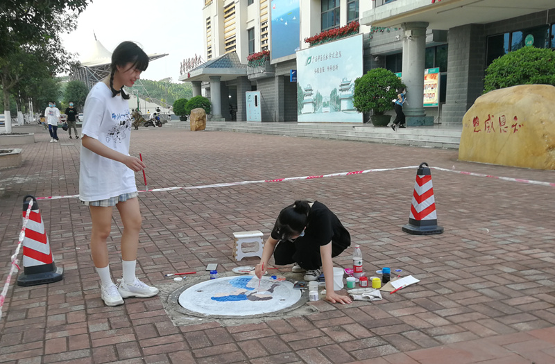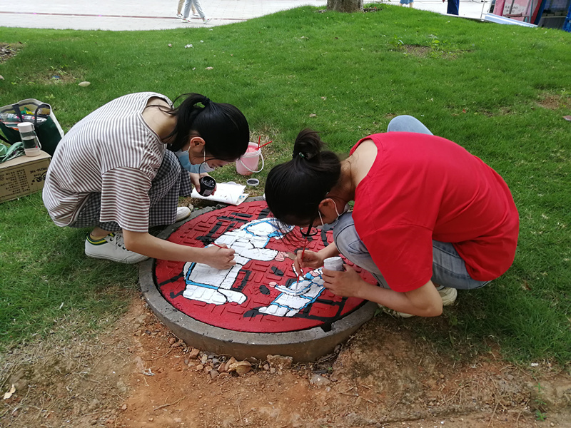 井盖挥豪传情 致敬白衣天使 beat365官网举办首届校园井盖涂鸦大赛