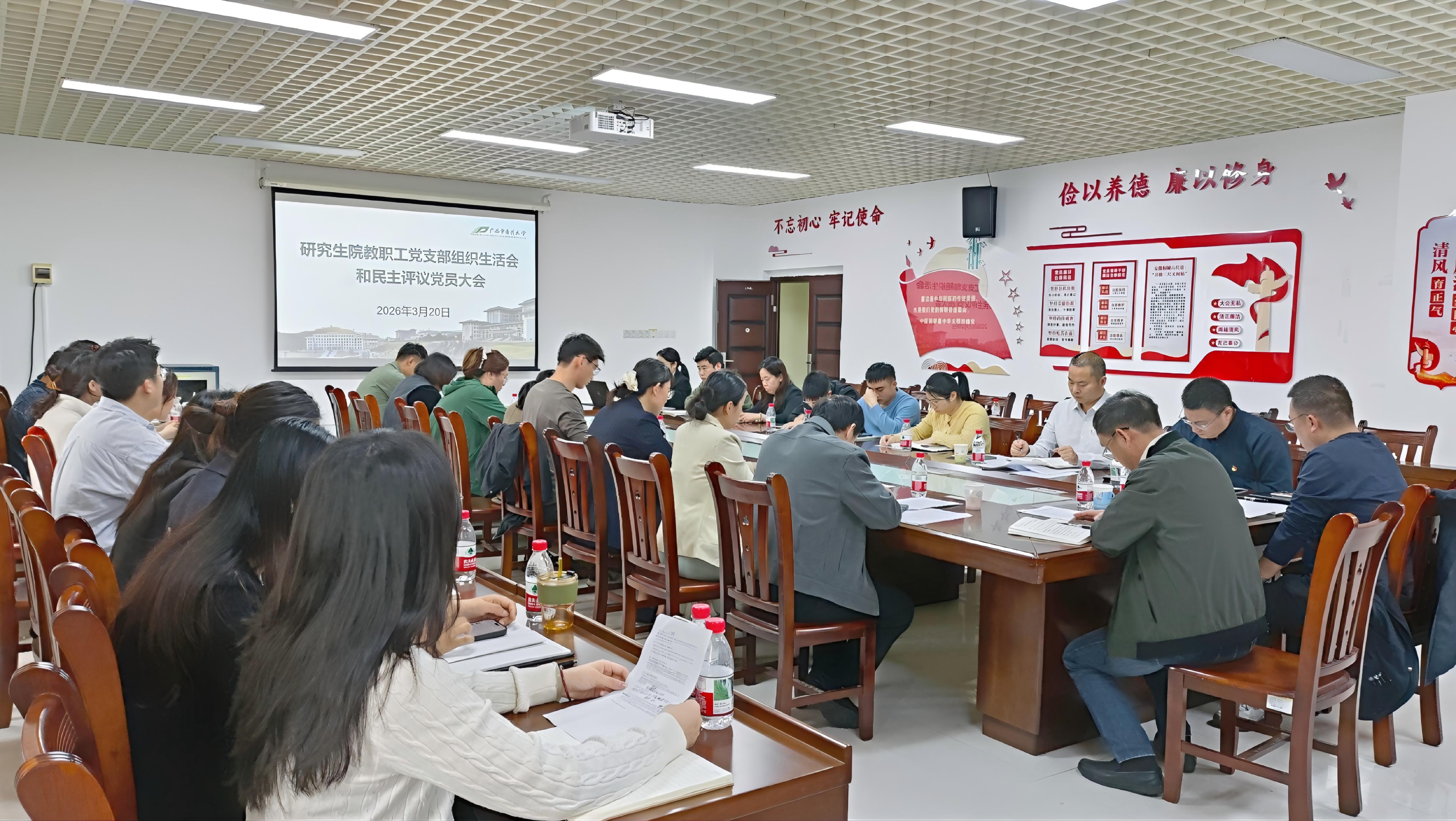 3月20日上午,研究生院教职工党支部在自诚楼A411会议室召开2025年度组织生活会,党支部书记孙平良主持会议,支部全体党员参加,研究生院党委书记吴林作点评。