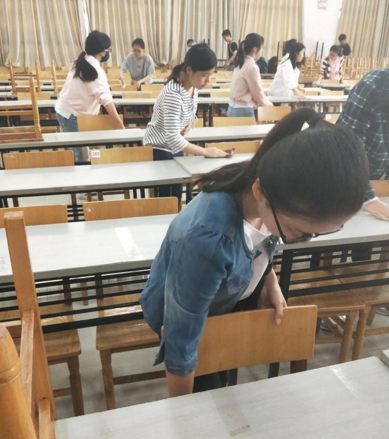 同学们正在擦拭桌椅