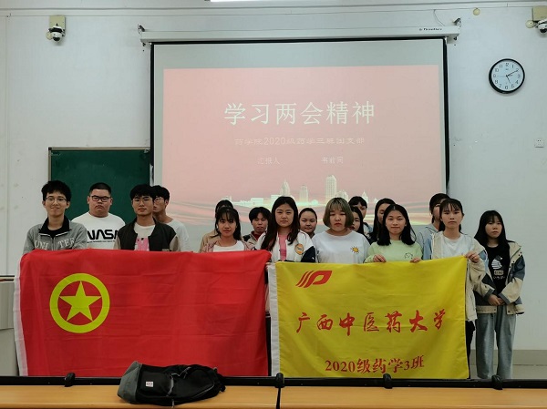 为深入学习“两会”精神,增强大学生的思想政治理论素养,4月5日晚,2020级药学3班于仙葫校区2-206教室开展的“深入贯彻学习两会精神”主题班会圆满完成。