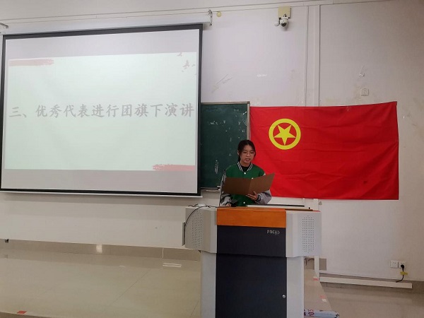 活动围绕“新时代的伟大成就”主题,通过介绍中国共产党自党的十八大以来在坚持党的全面领导上等共十三个方面取得的伟大成就、优秀代表在团旗下演讲两个形式开展。活动伊始,由优秀代表发言引出本次主题团日活动的副主题:“以已梦许国梦,是祖国之幸,亦是少年之幸”,并由吴玉峰老师深入讲解了党的二十大开幕会上习近平总书记对青年的寄语,强调同学们应该怀抱梦想又脚踏实地,立志做有理想、敢担当、能吃苦、肯奋斗的新时代好青年,更加坚定地担当起历史赋予我们的责任与担当,走好新时代的长征路,绽放属于自己的青春绚丽之花。