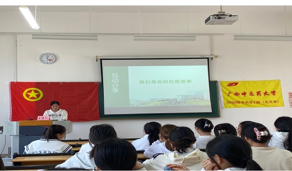 抗疫是一场没有硝烟的战争,要打赢这场仗,离不开中华民族的共同抗战的决心,为促进同学们对抗疫的了解,弘扬伟大抗疫精神。3月9日,2020级中药学专升本1班团支部在仙葫校区2-209教室开展了以“青春践行二十大,强国有我新征程”开学第一课主题班会。