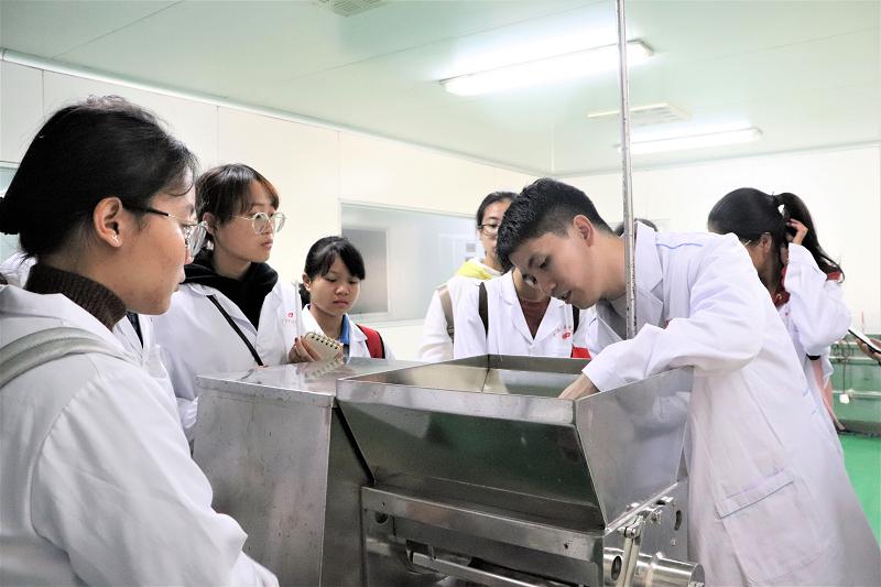 活动当天,志愿者们分成两个小组,在药物研发中心两位老师的带领下对提取车间、口服固体生产线、质检室以及药物研发中心的供热系统、空气净化系统等进行了参观。在参观过程中,志愿者们以认真好学的态度向老师积极提问,老师对提出的问题进行了细致的解答并给在场的同学们拓展了一些关于制药过程中的课外知识,使活动得以在这样一个学风浓厚的氛围中顺利开展。