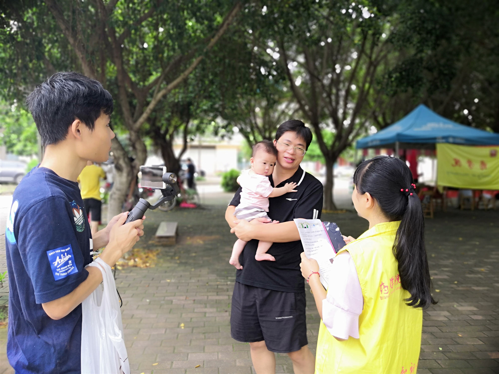 成员对居民进行视频采访调研