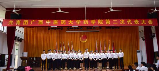 嘹亮的团歌为本次大会拉开了序幕,此次大会由学生会代表刘婧曦主持。会上,兄弟学院代表蓝晶晶致辞,对本次团代表大会的召开表示以热烈的祝贺,校团委书记王春花、药学院党委书记蒋林先后讲话,对我院工作给予肯定。