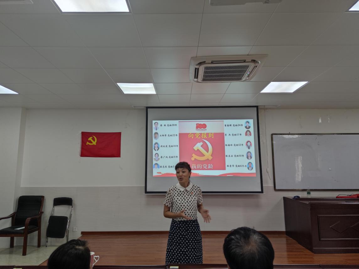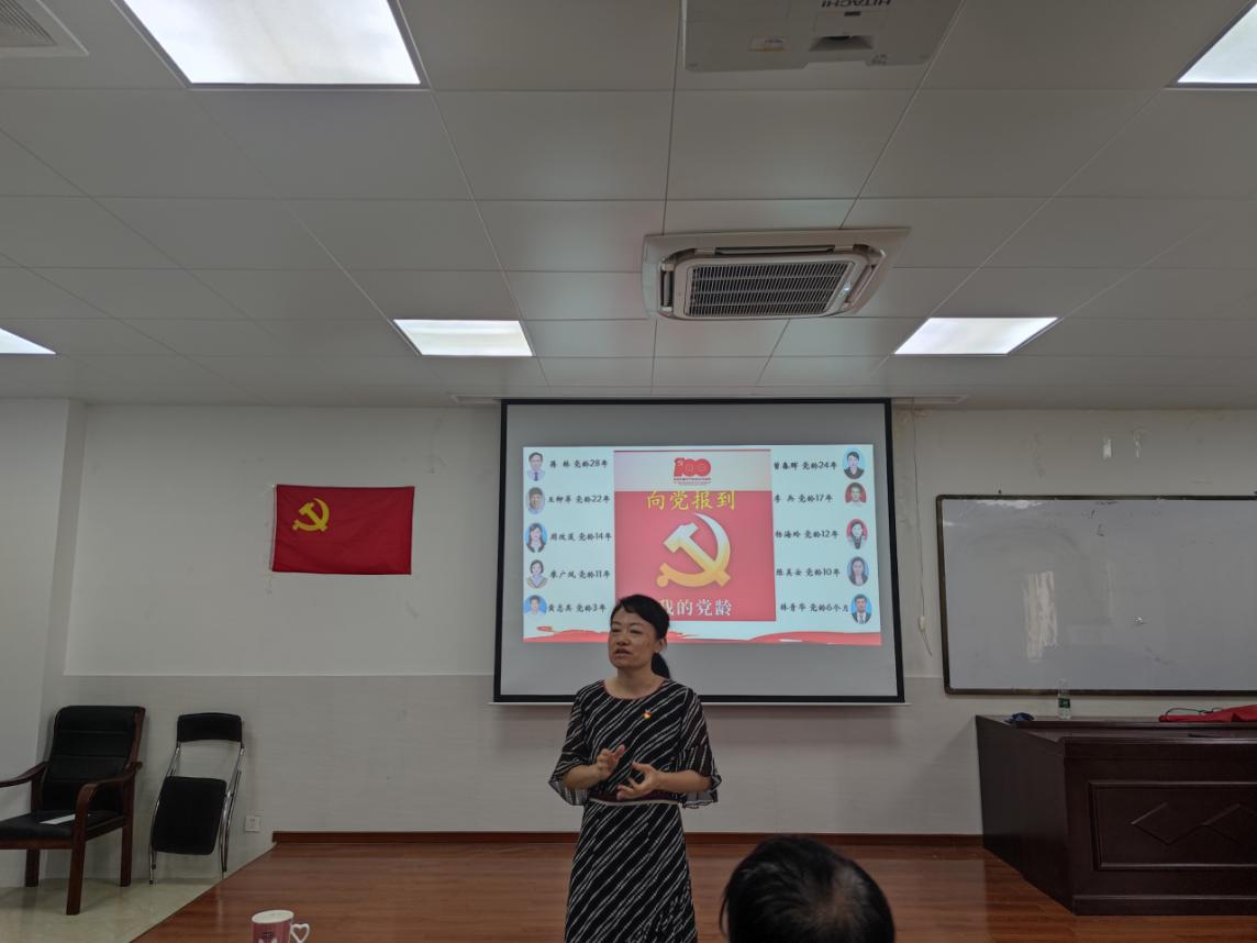 活动首先开展了“党史故事大家讲”的党课讲座。李兵、廖广凤和陈美安三位同志分别做了《新民主主义革命建设时期历史学习专题》、《重温长征故事》、《弘扬五四精神》为主题的讲座。随后,在支部党员“向党报到”活动中为新党员林青华同志进行佩戴党徽、入党宣誓等仪式。接着,每位支部党员在向党组织报到的同时分享了个人的入党心路历程,表达了在党百年诞辰之际要以实际行动向党献礼的心愿。活动还传达了深入开展习近平总书记视察广西的重要讲话精神文件及对四起违纪违法典型问题的通报。