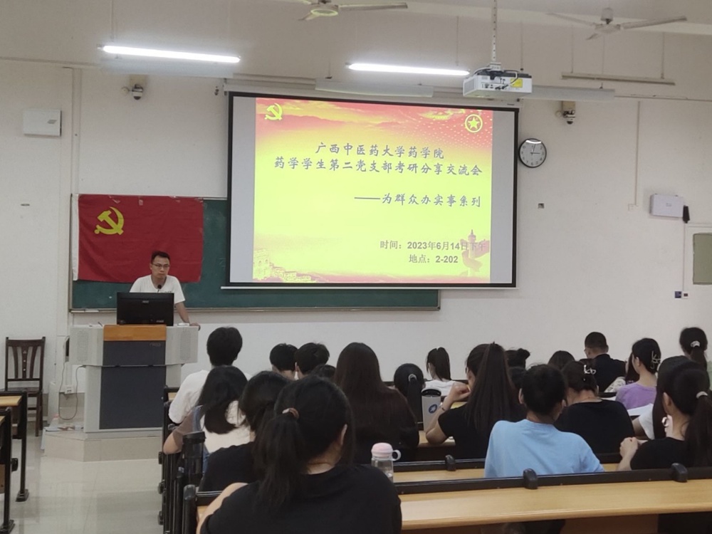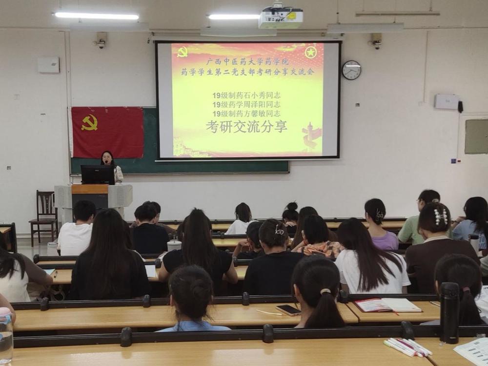 为帮助同学们更好地了解考研的具体要求以及考研所需准备事项, 5月14日下午,药学院药学学生第二党支部开展“我为群众办实事”之考研经验分享交流会,本次会议由支部书记黄鑫同志和纪检委员刘航同志组织,邀请了本支部石小秀、周泽阳和方馨敏三位同志分享考研成功的经验。